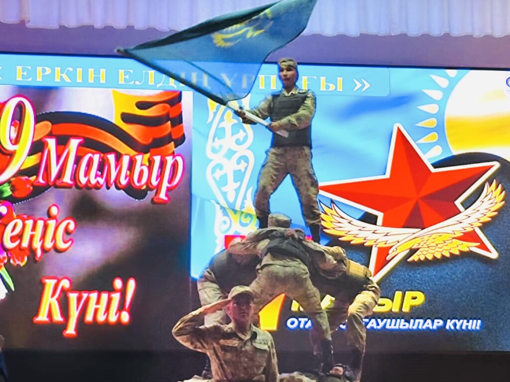 Әдеби-сазды кеш Ұлы Отан соғысында ерлік көрсеткен қаһармандар мен қаза болған сарбаздарды еске алып, бір минут үнсіздік жариялаудан басталды. Одан соң өнерпаздар ерлік, рух, жеңіс тақырыбындағы патриоттық өлеңдер оқып, әндер шырқады. Бұдан бөлек сарбаздар перфомансы жұмысшыларға жігер беріп, мұнайшылар орындаған күмбір күйлер көрермендерді ерекше әсерге бөледі.
