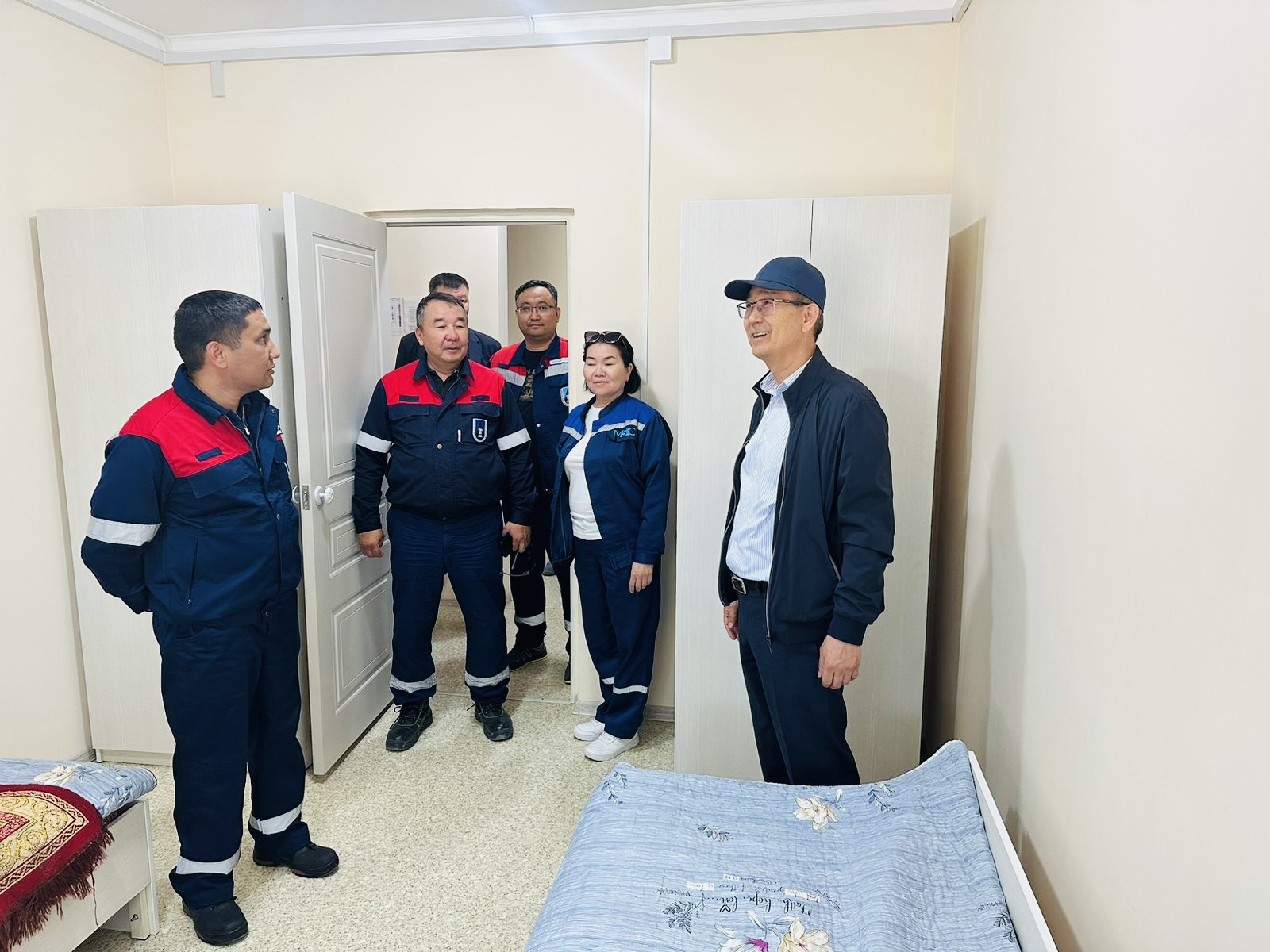 Өндірістік Басқарма басшылығы қос омбудсменді ең алдымен кен орнында салынып жатқан төрт блоктан тұратын, 192 адамға арналған жаңа жатақхананың құрылыс алаңына апарды. Қазір мұнда жұмыс қарқынды, ғимараттыңқабырғасы қаланып, төбесі жабылған, ішкі жұмыстар жүргізіліп жатыр.