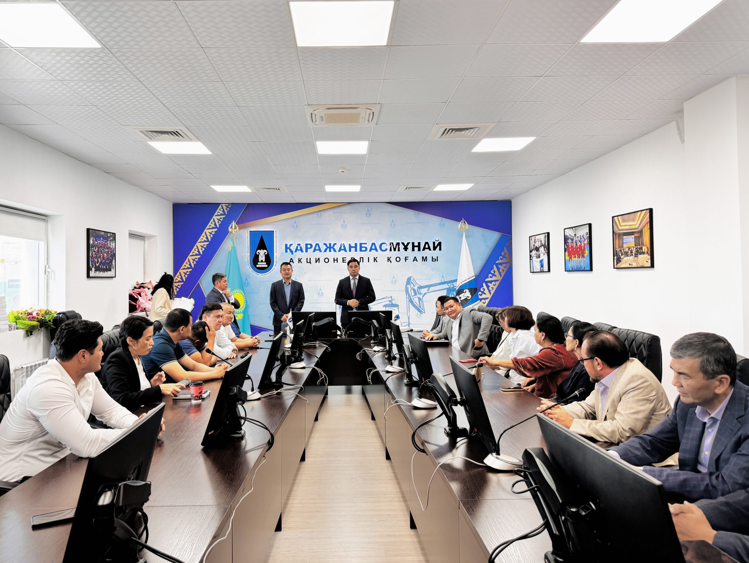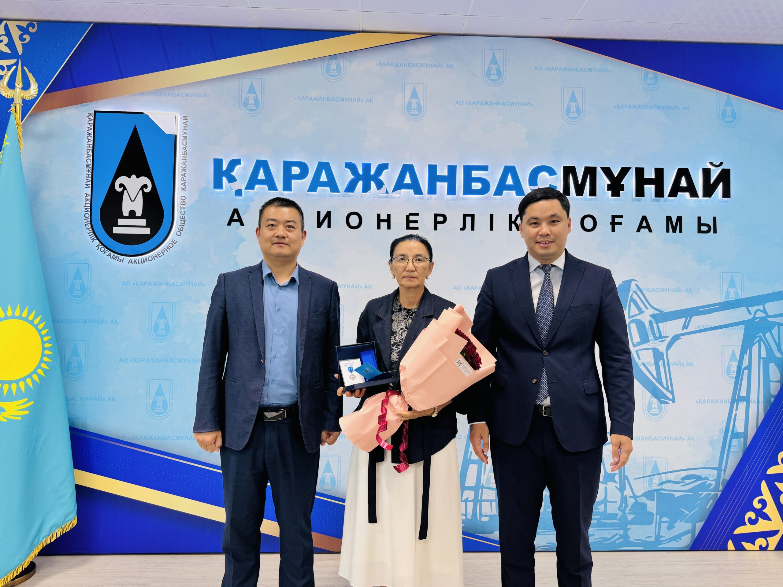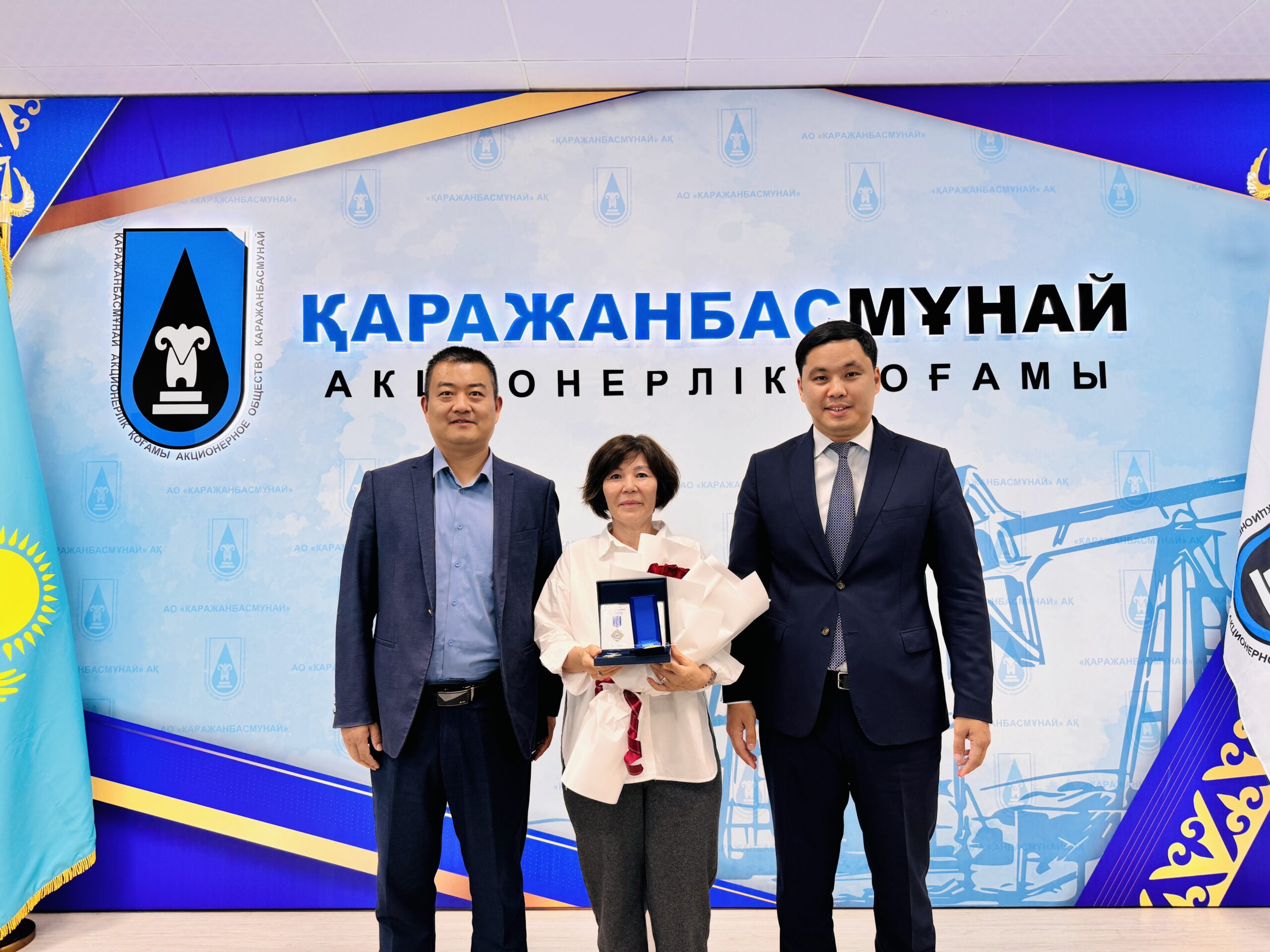 Бас директор Марат Елеусінов ұжымды құттықтап, компанияның дамуы жолында кен орнындағы мұнайшылармен қатар кеңсе жұмысшыларының да үлесі зор екенін атап өтті. Содан соң 30-ға жуық қызметкерді Қазақстан мұнайының 125 жылдығы, «Қаражанбасмұнай» АҚ 50 жылдығына арналған төсбелгілермен марапаттады. Бұдан бөлек бірқатар жұмысшыға Маңғыстау облысы әкімі мен ҚБМ Басқармасы атынан алғыс хаттар табысталды.