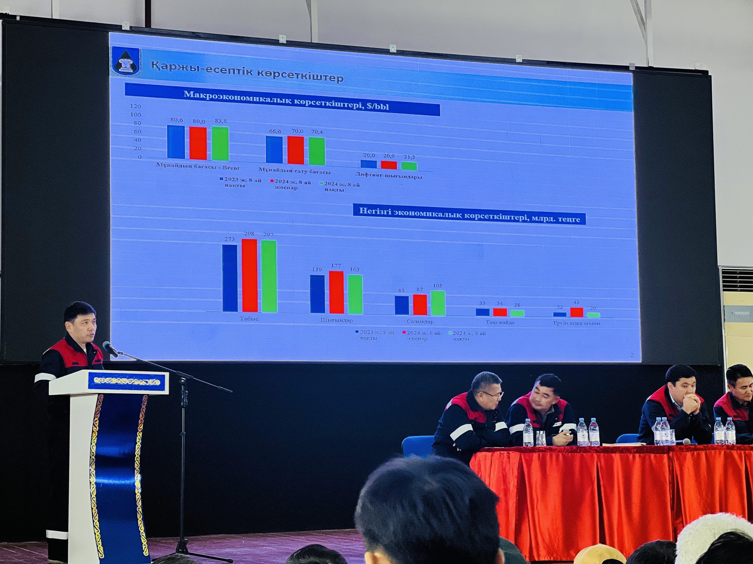 «Қаражанбасмұнай» АҚ (ҚБМ) басшылығы І вахтаның еңбек ұжымына 2024 жылдың 8 айында атқарылған жұмыстар бойынша есеп беру кездесуін өткізді. Жиналыста Бас директор Марат Елеусінов пен Бас директор орынбасарлары компанияның өндірістік, геологиялық, қаржылық, коммерциялық, кадр және әлеуметтік салалары бойынша көрсеткіштерді таныстырып, жыл соңына дейінгі жоспарларын бөлісті.