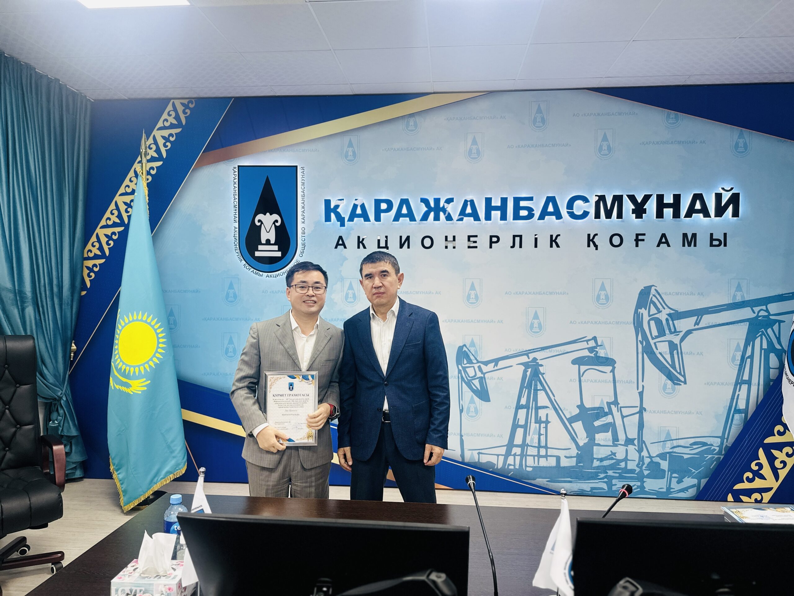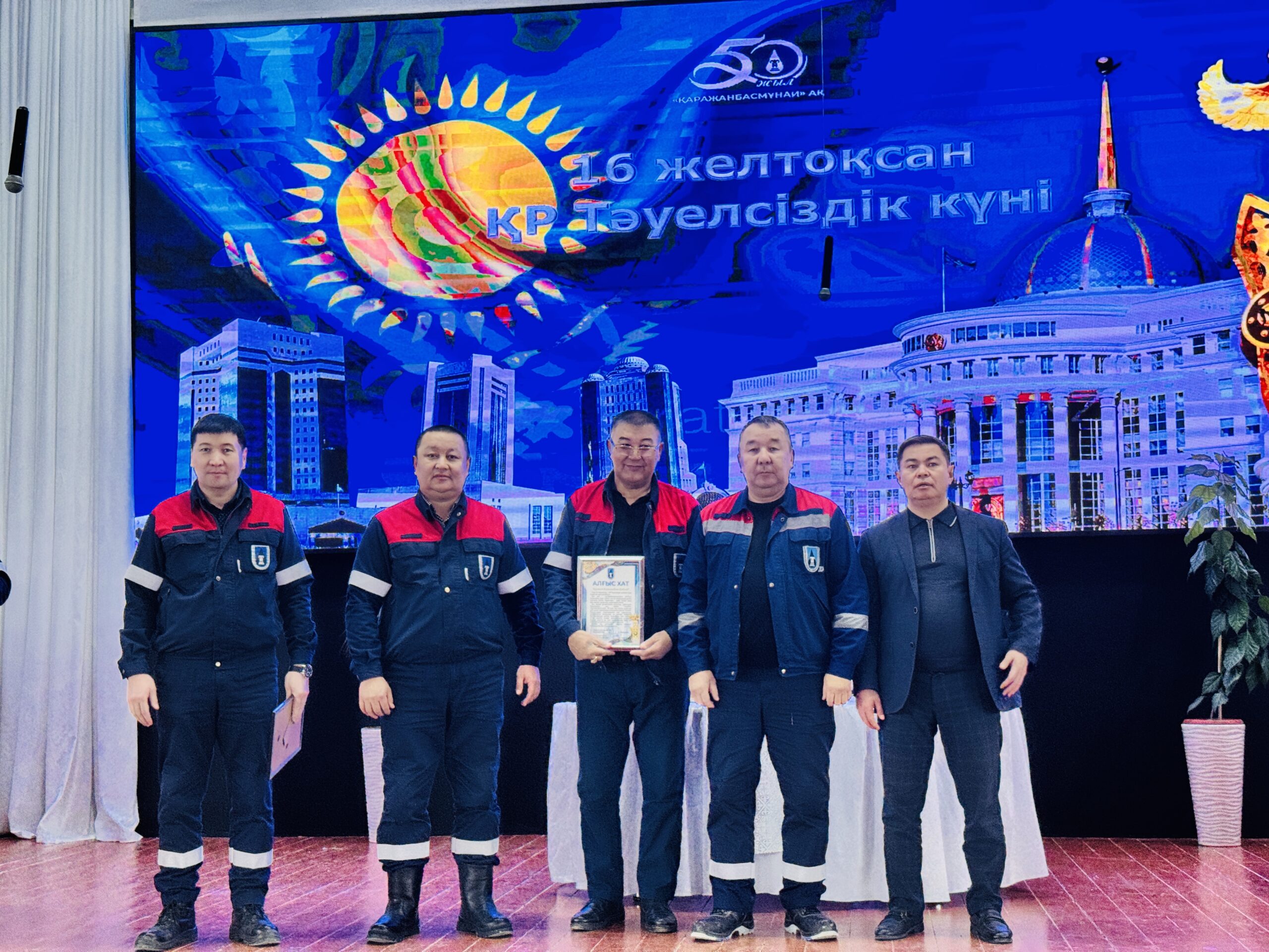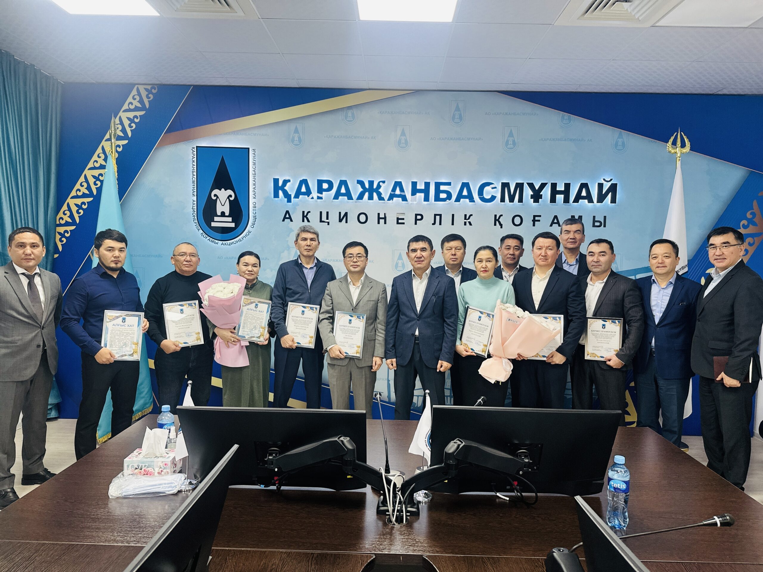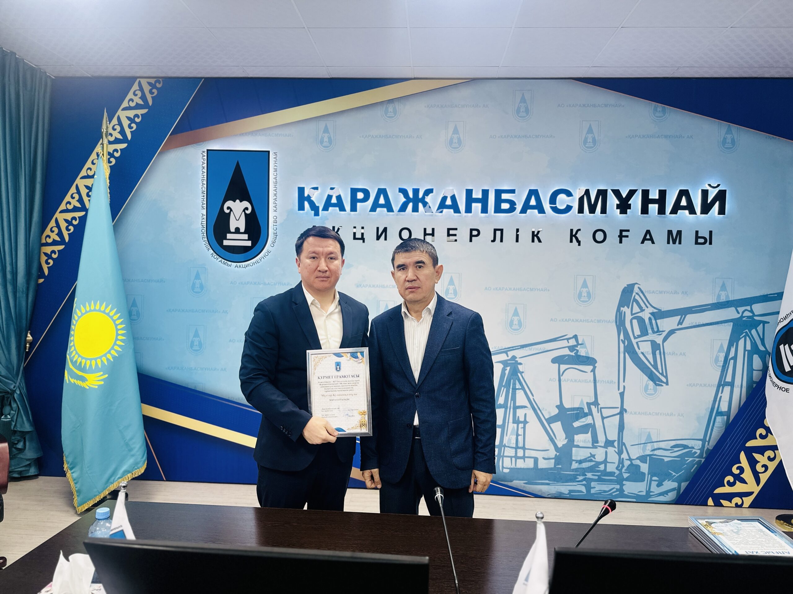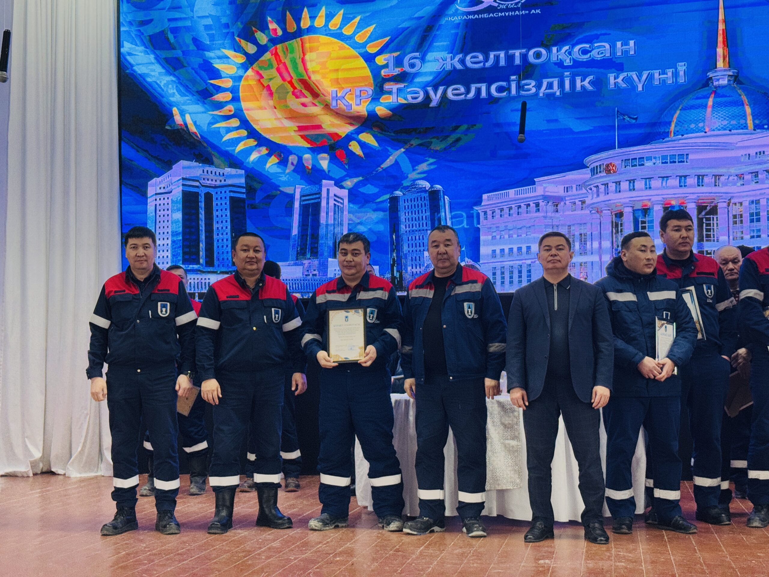 «Қаражанбасмұнай» АҚ (ҚБМ) қызметкерлері мемлекеттік маңызды мереке – Тәуелсіздік күніне орай марапатқа ие болды. Компанияның Бас директоры Нұрпейіс Сәрсенбай және Өндірістік Басқарма басшылығы ҚБМ-ның жан-жақты дамуына үлес қосып, қызметте кәсіби біліктілік пен жауапкершілік, тұрақтылық танытқан орталық кеңсе мен кен орнында жұмыс істейтін 100-ге жуық жұмысшыға Құрмет грамотасы мен алғыс хаттар табыс етті.