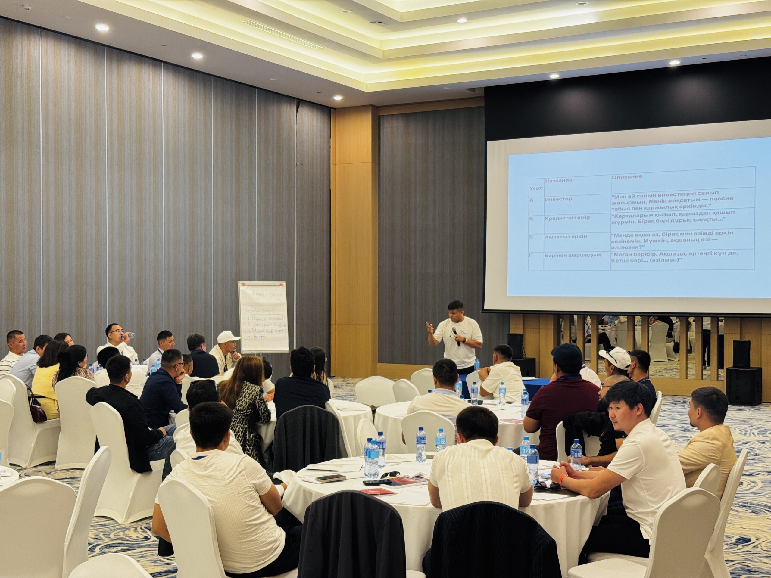 Бұдан соң қатысушылар тұлғалық даму тренингіне қатысты. Мұнда қаржылық сауаттылық, отбасындағы құндылықтарды сақтау мен дәріптеу тақырыптары сөз болды. Жалынды жастарға Ғани Абадан, Асқар Секербаев сынды спикерлер дәріс оқып, әр тақырыпқа тереңірек бойлауға тырысты. Мұнайшылар да ойға ой қосып, пікірлерін ортаға салды.