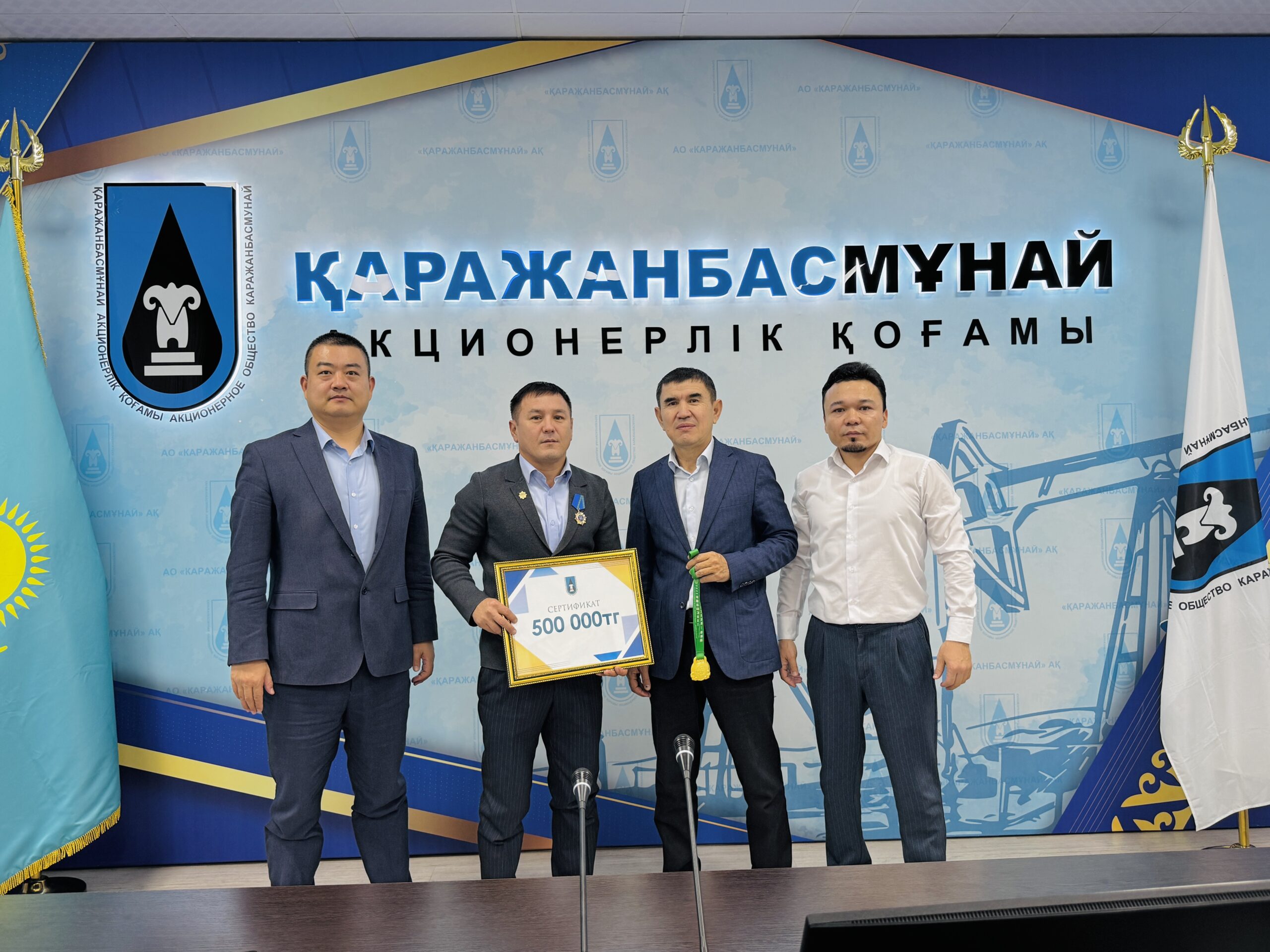 «Қаражанбасмұнай» АҚ Басқармасы «Самұрық-Қазына» АҚ құрметті қызметкері» атағына ие болған өндірістік-техникалық департамент директоры Ғабит Сәдуақасов пен кір тасын көтеруден Әлем чемпионатында қос алтын қанжығалаған жұмысшы Нартай Алтыбаевты құттықтады. Бас директор Нұрпейіс Сәрсенбай қызметкерлерге ҚБМ абыройын асқақтатқаны үшін алғыс айтып, компания өздерін мықты маман әрі жеке тұлға ретінде биік белестен көрсете білген қызметкерлерімен қуатты екенін атап өтті.